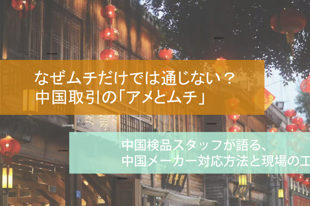 なぜムチだけでは通じない?中国ビジネスにおける「飴とムチ」 私は最近、中国メーカーとのやり取りの中で、とても不安や戸惑いを感じることが多く、品質管理の難しさに日々苦労してきました。また、今回気づかされたことや、現場を実際に目で感じたことを... -