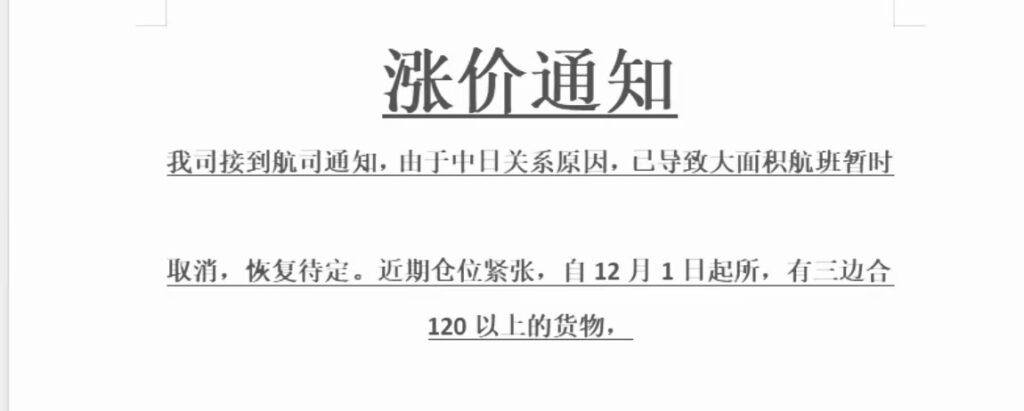 当社ではオンラインショップも運営しており、最近、日本向けの物流が本当に大混乱で、ここ2~4週間ほど、フォワーダーから次のような連絡が立て続けに入っています。